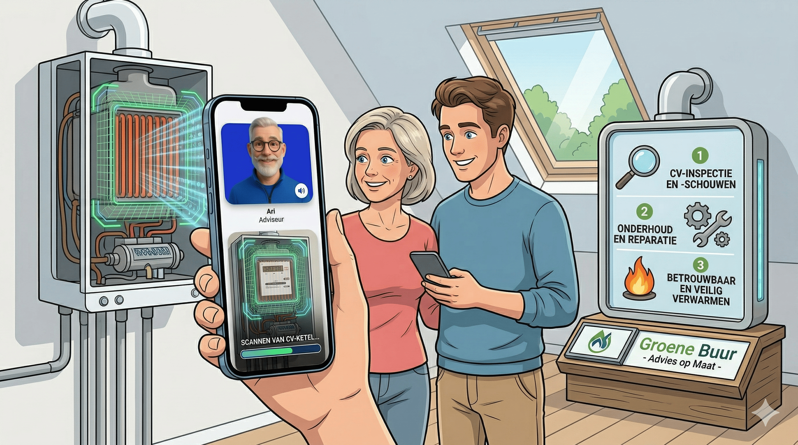 Huisscan Ari combineert kunstmatige intelligentie (AI) met Augmented Reality (AR) om de schouw te digitaliseren. Het doel is simpel: de klant doet het voorwerk, de software doet de analyse en jij krijgt een kant-en-klaar dossier.